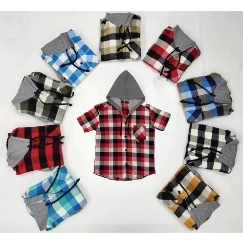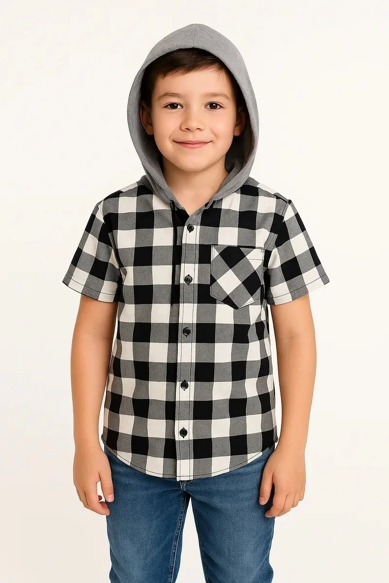 >>>CAMISA MANGA CORTA DE NENE VERANO CON CAPUCHA A CUADRILLE>>>