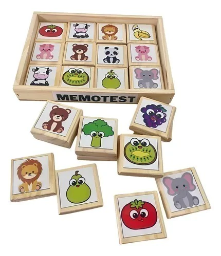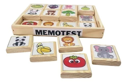 Memotest es un juego de memoria diseñado para estimular la concentración y la agilidad mental de los más pequeños. Con 24 fichas de madera con imagenes para emparejar, este juego es ideal para niños, permitiendo que se diviertan mientras ejercitan su memoria.