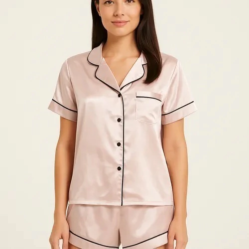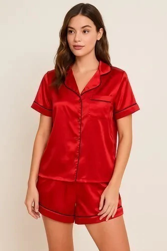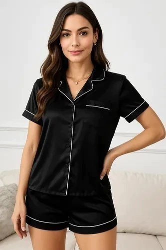 >>>PIJAMA DE RASO SATÉN CAMISA MANGA CORTA BOLSILLO>>>