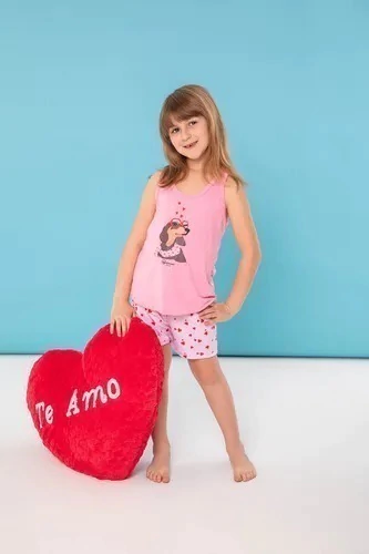 Pijama infantil en Modal. Musculosa, cuello redondo, con estampa central. Short estampado, con elástico y lazo decorativo en cintura. Marca Bianca Secreta.