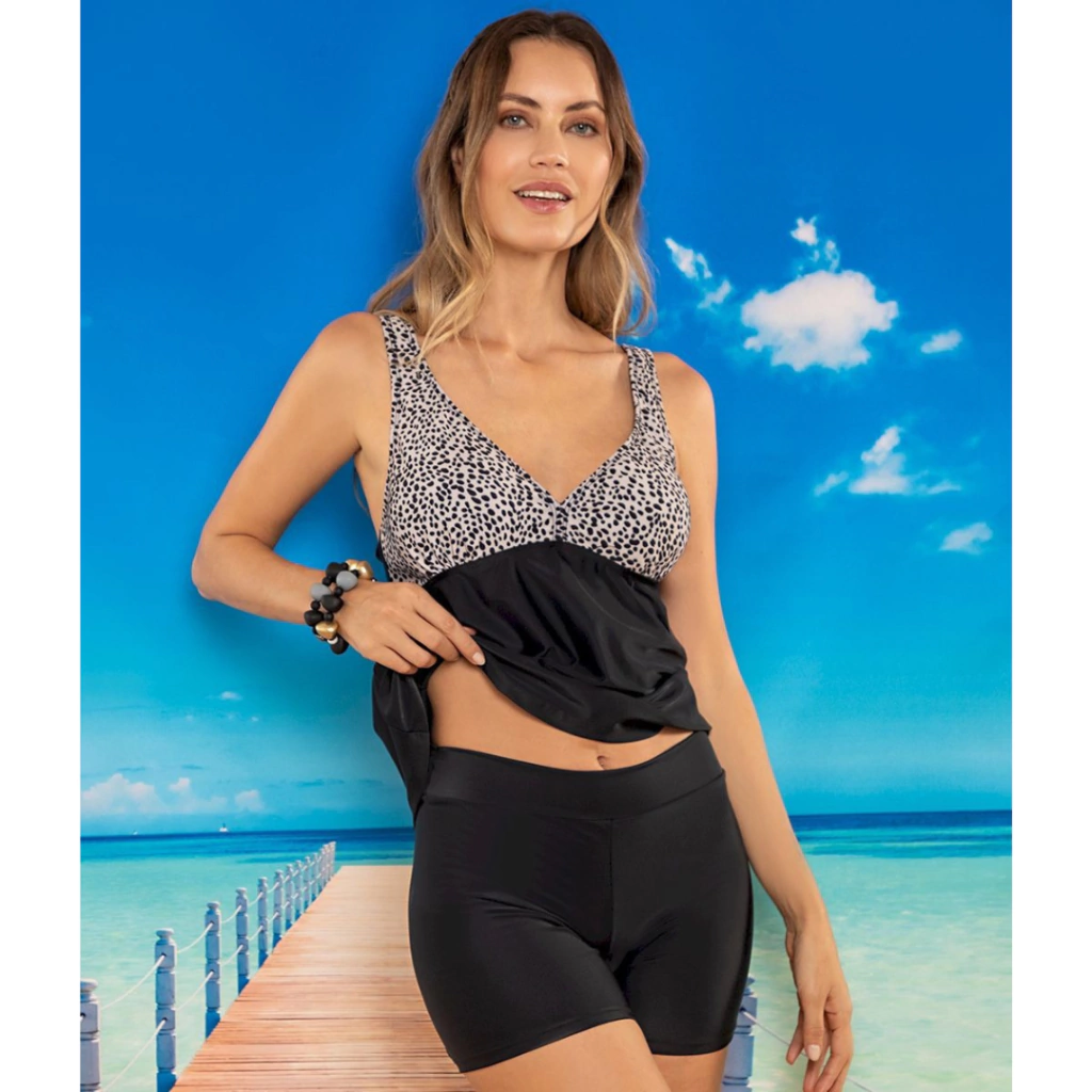 Malla Tankini taza estampada y forrada con calza. Plus Size.